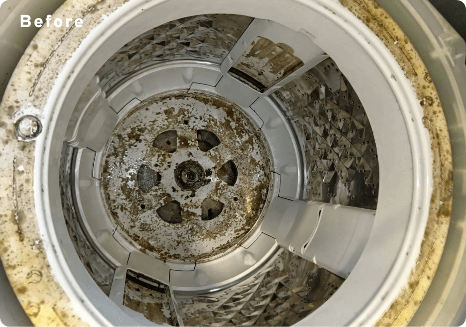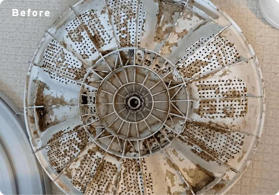 洗濯槽の底にあるパルセーターには、見えない汚れやカビがびっしり。